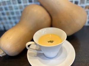 知多半島産のバターナッツカボチャを使った濃厚なクリームスープです!