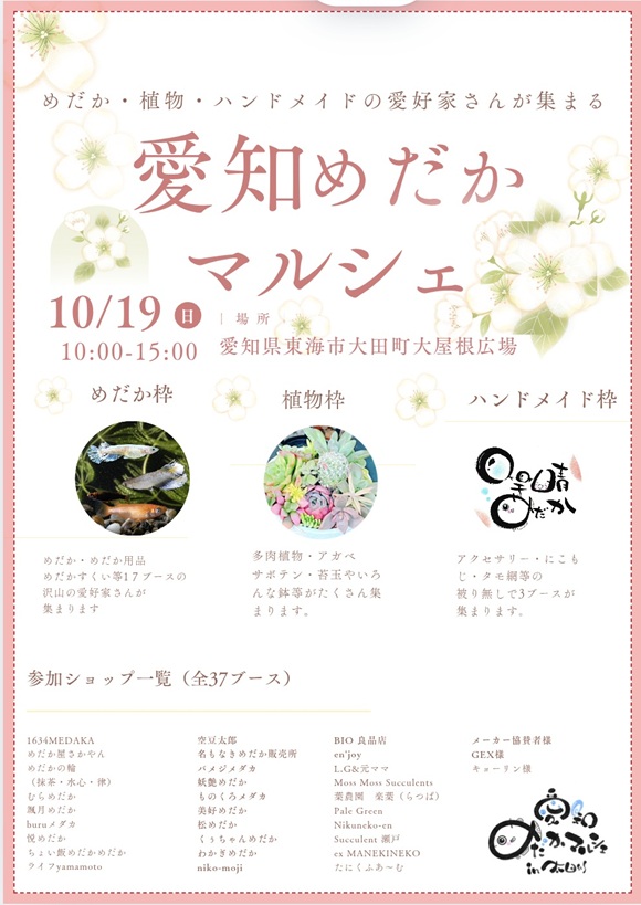 今回は、改良めだか17ブース・植物17ブース・ハンドメイド3ブースの