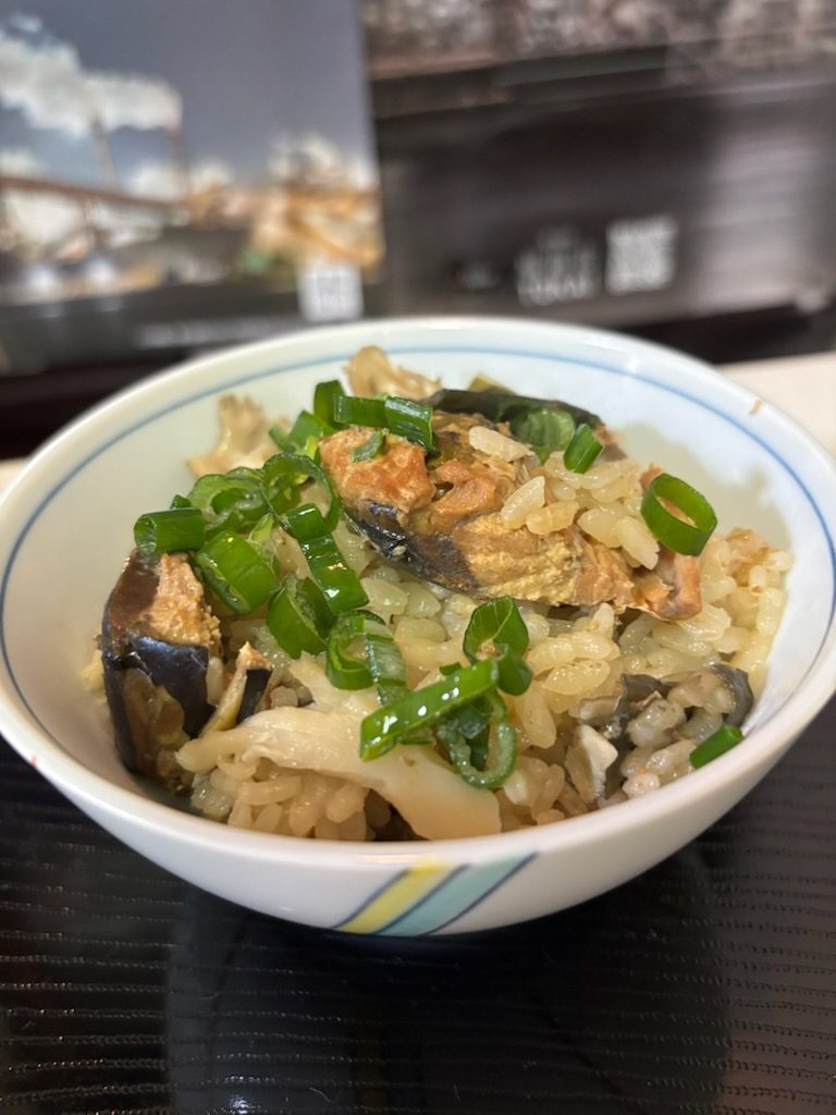 さば缶をお米と一緒に炊いて鯖缶炊き込みご飯です