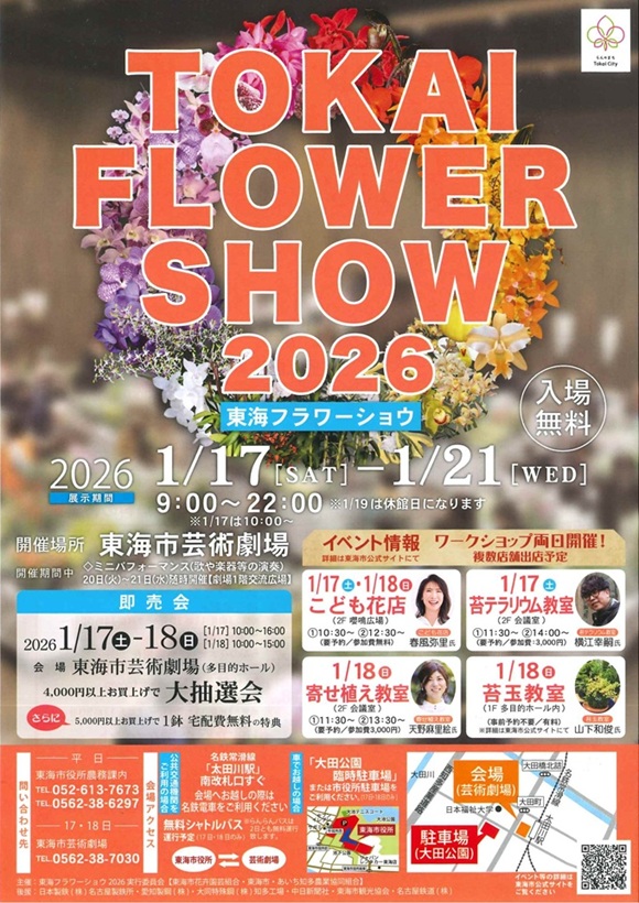 太田川駅歩いてすぐの場所にある東海市芸術劇場で、東海フラワーショウが開催されます!