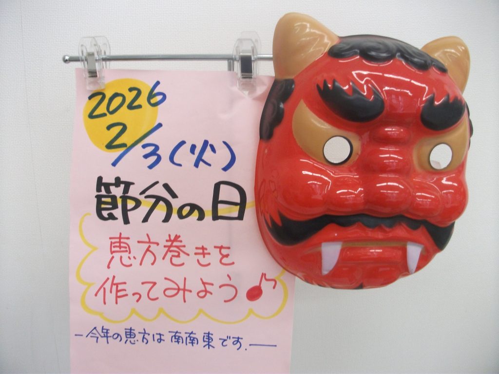 今年1年、元気で、よい年になるように、願いをこめて、節分を楽しんでください(o^―^o)ニコ