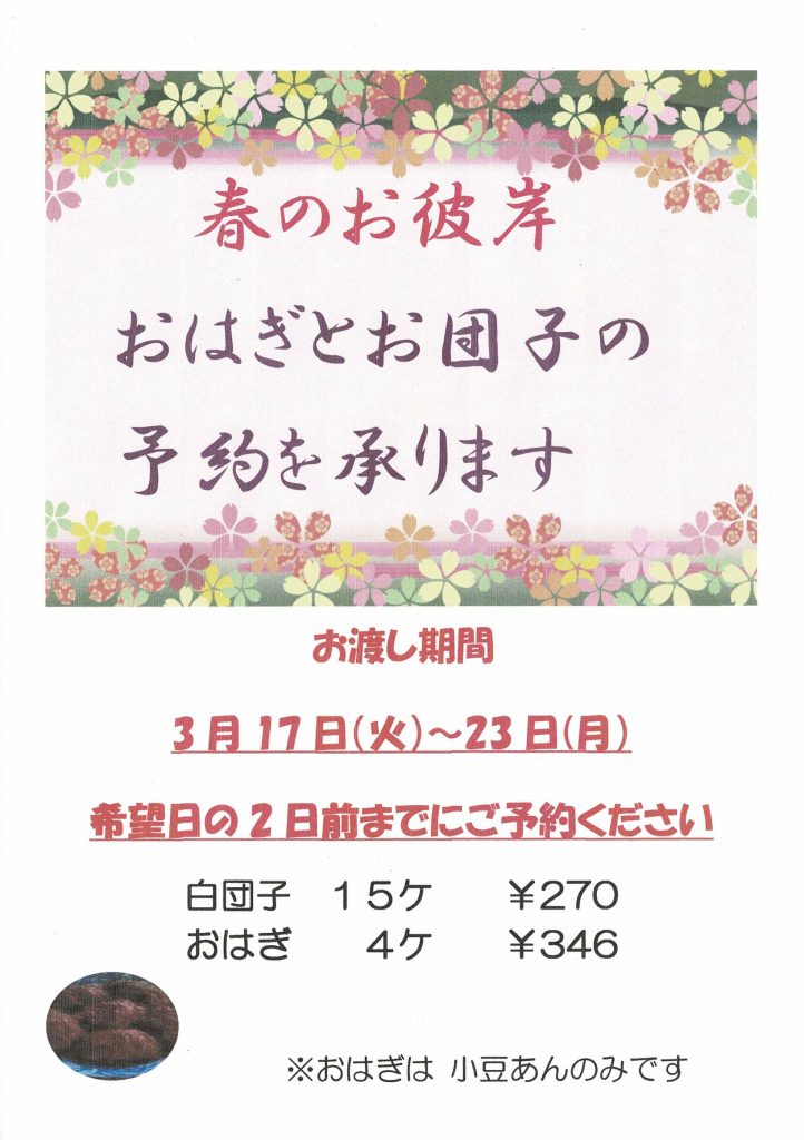 「おはぎと団子」予約承ります