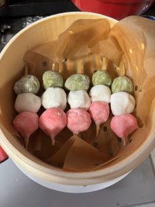 で三色団子を作ってみました🍡
